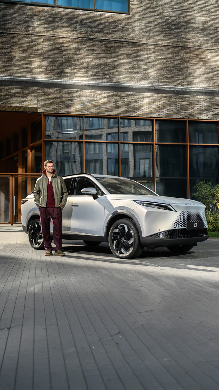 OMODA C7 сочетает элегантность купе с функциональностью кроссовера. Неповторимый образ формируют X-образная решетка радиатора, динамичный силуэт и уникальная графика ходовых огней.