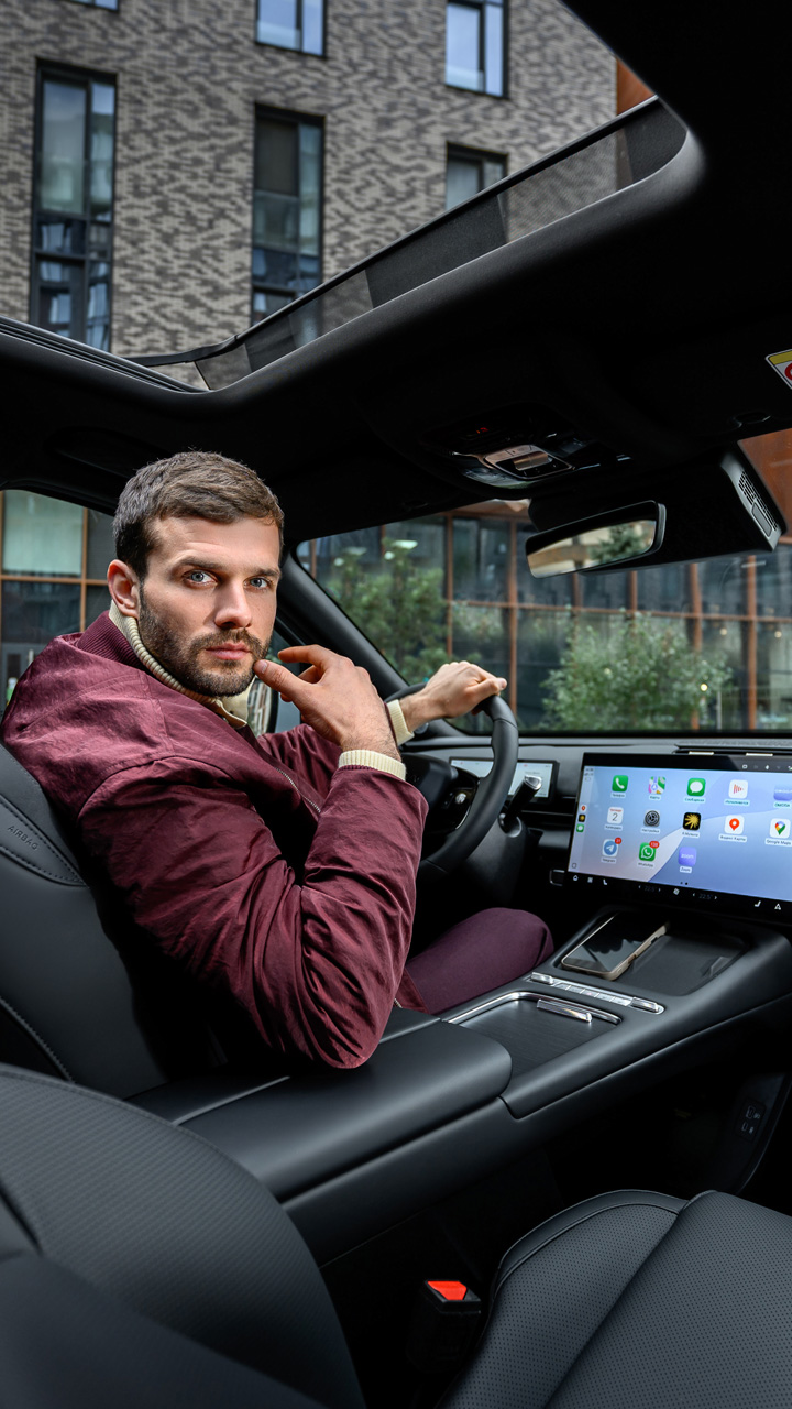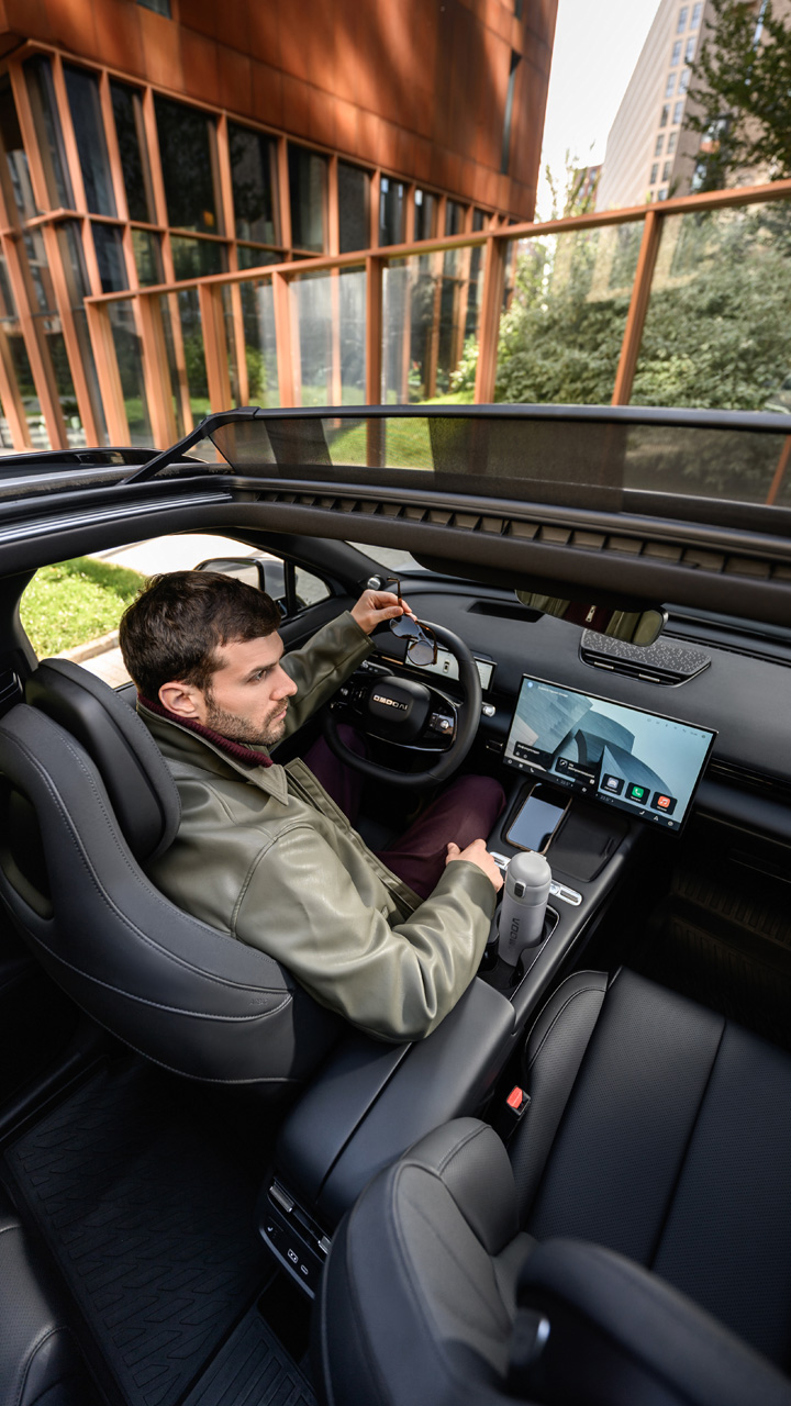 Стильный и просторный салон, высококачественные материалы отделки, эргономичные спортивные сиденья, 15,6-дюймовый парящий экран с разрешением 2,5К и цветной проекционный дисплей. Каждая поездка — наслаждение!